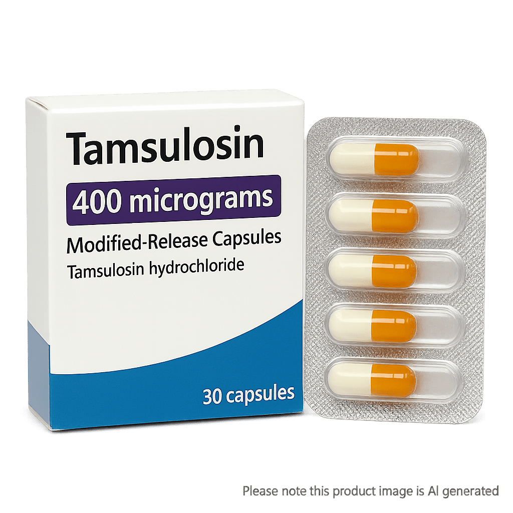 Tamsulosin is a widely used alpha-blocker prescribed to relieve urinary symptoms caused by benign prostatic hyperplasia (BPH), a non-cancerous enlargement of the prostate gland commonly affecting men over 50. It is formulated as a modified-release capsule containing 400 micrograms of tamsulosin hydrochloride, designed for once-daily use.